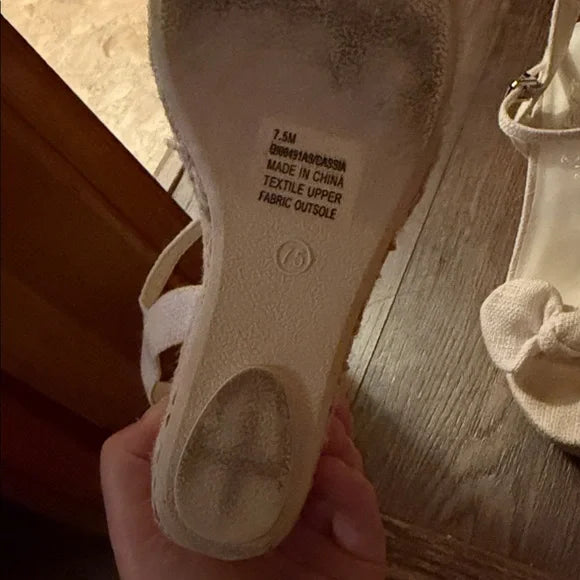 • White//Cream Wedges • Has bow detail up front • Clasps around ankle