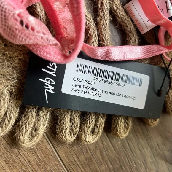 Nasty Gal Lace Talk About You and Me Lace-Up 3 Pc Set PINK M